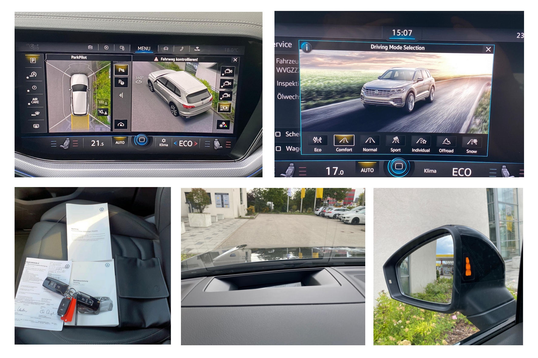 Ambiente-Paket, Connectivity-Paket, Dachreling, Design-Paket Black Style, Fahrassistenz-Paket Plus, Fahrassistenz-System: Nachtsicht-Assistent, Head-up-Display, Innovision Cockpit (Instrumente digital und Bedienung über Touchscreen-Farbdisplay), Klimaanlage Climatronic 4-Zonen, Komfort-Paket Keyless Access, 4 Leichtmetallräder Estoril 9,5 J x 22in Schwarz, Oberfläche glanzgedreht, Volkswagen R, Luftfederung elektronisch geregelt inkl. Allradlenkung, Matrix-LED-Scheinwerfer (IQ.Light), Memory-Paket, Metallic-Lackierung, Mobile Online Dienste Car-Net, Parkassistent-Paket (Park Assist Plus), Reifendruck-Kontrollsystem (Fahrbereifung und Winterreifen), Schienensystem und Fixierset im Gepäckraum, Seitenscheiben hinten und Heckscheibe abgedunkelt, Sender für Garagentoröffner (integriert), Sitze vorn mit Klima- und Massagefunktion, Sound-System DYNAUDIO, Standheizung mit Standlüftung (Fernbedienung und Timer), Steckdose 230V, Winter-Paket inkl. Sitzheizung hinten, Winterbereifung zusätzlich (Kundenangabe erforderlich)